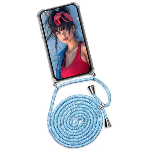 moex Mobiltelefonkedja kompatibel med Samsung Galaxy A51, fodral med band, justerbar längd, mobiltelefonskal för upphängning, silikonfodral transparent med snöre, avtagbart i blått