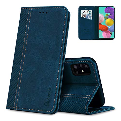 UDBKKDX Plånboks fodral för Samsung Galaxy A51, vintage matt retro läder med visningsstativ kameralinsskydd stötsäker 4 korthållare premium case cover