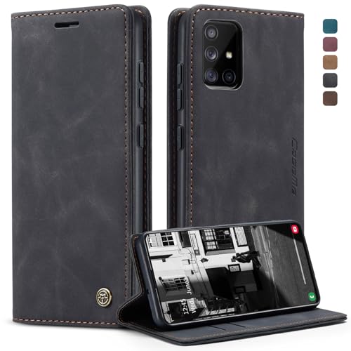 Cracedily Skal för Samsung Galaxy A51 Case, Läderfodral Plånbok Skal, [TPU-skal] [Kortplatser] [Kickstand] stöttåligt folio flipfodral Wallet Leather Cover för Samsung Galaxy A51, Svart