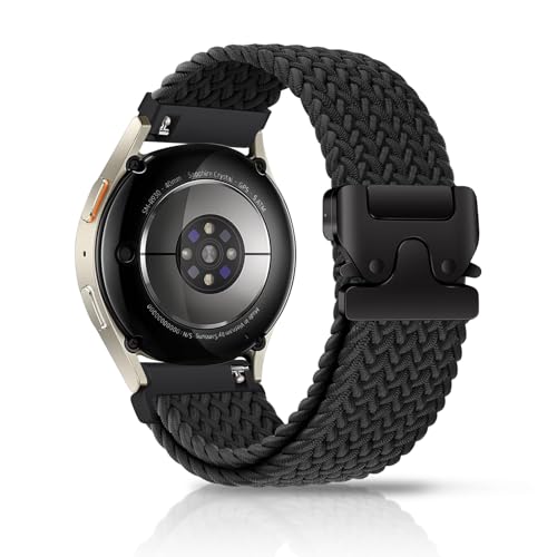 Flätat nylon klockband Stretchig sportband med säker fallskärmsspänne – Compatible with Samsung Galaxy Watch 7/FE/6/5/4/3 & Watch 5 Pro & 6/4 Classic & Gear S3/S2, Svart