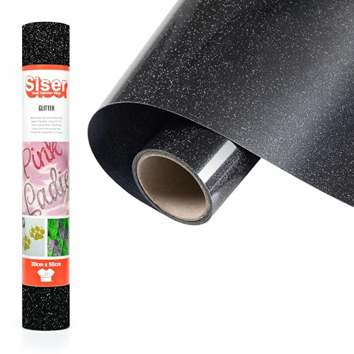 Siser® Glitter Galaxy Black, 30 cm x 0,5 m, glitter värmeöverförbar vinyl för anpassning av tyger, kläder och tillbehör, kreativa hobbyer, lätt att klippa