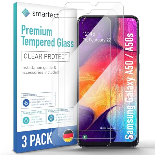 smartect [3 Stycken, Clear] Skärmskydd kompatibel med Samsung Galaxy A50 / A50s / M30s / M31 / M21, HD Screen Protector i Härdat Glas 9H, Bubbelfri Installation, Anti-Fingeravtryck
