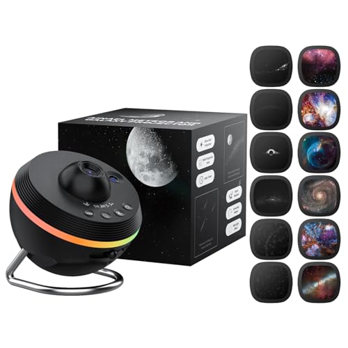 Galaxy Projektor, 4K HD Planetarium Star Projektor med 13 filmskivor, 360° Roterbar Realistisk Nebula Projektor Nattljus Projektor med Timer och Dynamisk Meteor för Sovrummet (Svart)