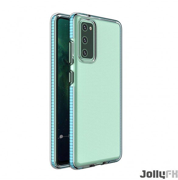 JollyFX Spring Case klart TPU gel skal med färgglad ram för Samsung Galaxy S21 Plus 5G Ljusblå