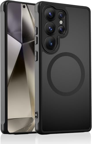 HikerClub for Galaxy S24 Ultra 5G (2024) Magnetic Case Translucent Matte Shockproof Protection Cover Soft Slim Thin TPU Silicone Resistant Bumper Lens Protector Back Cases, Black