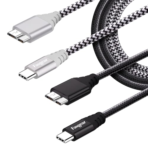 Fasgear USB C till Micro B-kabel [1m] Nylonflätad metallkontakt Typ C till Micro 3.0-kabel Snabbladdning 5 Gbps Sync Kompatibel med Toshiba Canvio, Galaxy S5 Note 3 och mer (1m, Grå)
