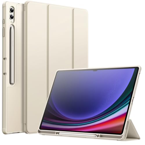 JETech Fodral för Samsung Galaxy Tab S10 Ultra/Tab S9 Ultra 14,6 Tum med S Pen Hållare, Mjuk TPU Tri Fold Stativ Tablettfodral, Support S Pen Laddning, Automatisk Väckning/Sömn (Beige)