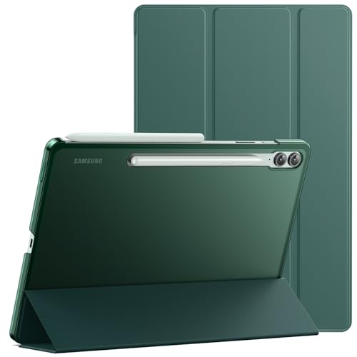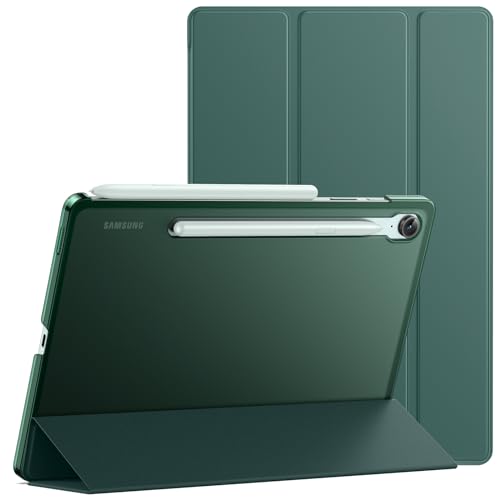 JETech Fodral för Samsung Galaxy Tab S9 FE+/S9 FE Plus 12,4 Tum, Smal Genomlysande Rygg Tri-Fold Folio Stå Skyddande Tablettskydd, Support S Pen Laddning, Automatisk Väckning/Sömn (Midnattsgrön)