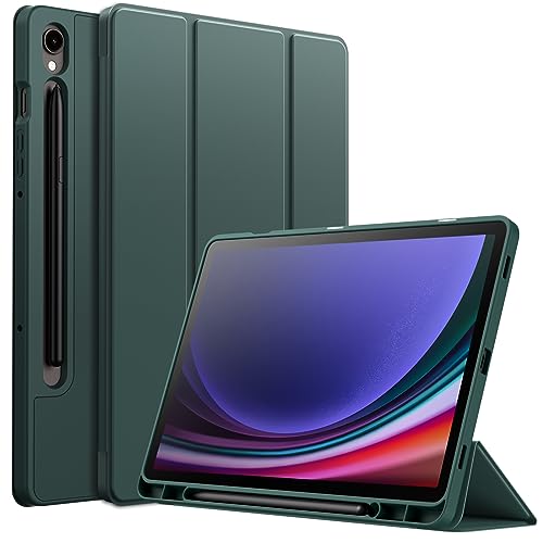 JETech Fodral för Samsung Galaxy Tab S9 11 Tum med S Pen Hållare, Mjuk TPU Tri Fold Stativ Tablettfodral, Support S Pen Laddning, Automatisk Väckning/Sömn (Midnattsgrön)