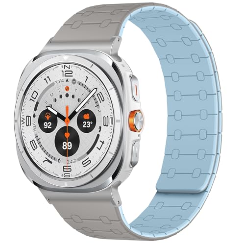 Amizee No Gap Band kompatibla med Galaxy Watch Ultra Band 47 mm (2024) kvinnor män, magnetisk sport silikonrem armband för Galaxy Watch 7 Ultra 47 mm, kaki/L-blå