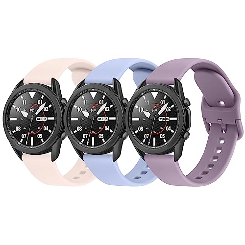 AK-remmar kompatibla med Samsung Galaxy Watch 3 rem 45 mm kvinnor män, 22 mm justerbar mjuk silikon sportrem ersättningsband för Galaxy Watch 3 band 45 mm (naken rosa/naken blå/violett)