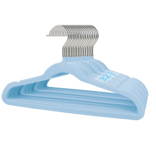 Stormix 32-pack klädgalgar för bebisar, sammetshängare för barn, halkfria galgar för kläder med axelskåror för småbarn, blå