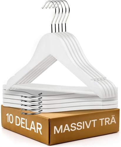 Praknu Barngalgar Trä Vita - Set om 10 - Klädhängare för Barn av FSC® Bokträ - Galgar i trä med Skåror och Roterande Krok