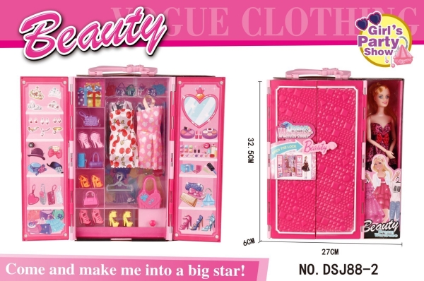 Triton Garderobsdocka För Barn 3+ Rörliga Delar + 2 Klänningar + 5 Handväskor + 4 Par Skor + 3 Galgar