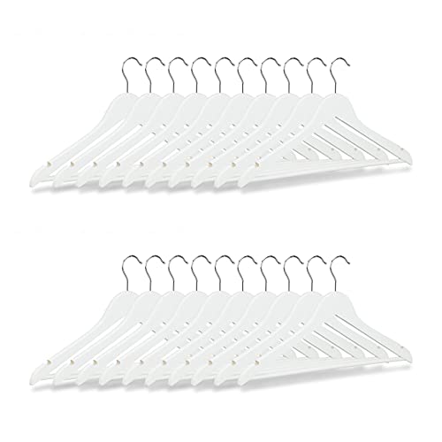 Relaxdays klädhängare set trä, 20-pack garderobshängare, skjortor och byxor, 360° roterbar, galge H x B 23 x 44 cm, vit