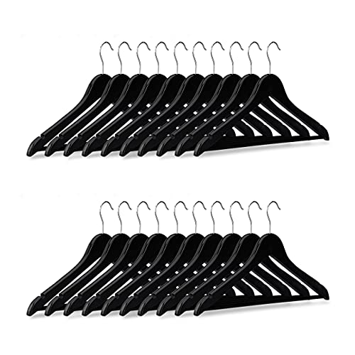Relaxdays klädhängare set trä, 20-pack garderobshängare, skjortor och byxor, 360° roterbar, galge H x B 23 x 44 cm, svart