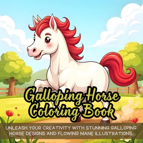 Galloping Horse Coloring Book: Unleash your creativity with stunning galloping horse designs and flowing mane illustrations,