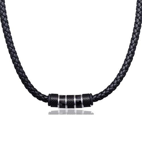 David Galvani herrkedja med pärlhänge i rostfritt stål, halsband för män, rostfritt stål, boll, läderkedja, flätad läder, Läder, Ingen ädelsten
