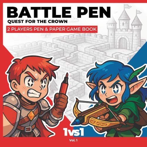Battle Pen – Quest for the Crown. 2 PLAYERS PEN & PAPER GAME BOOK: Medieval adventure gamebook for kids and teens – strategy, drawing and dice battles for two players, ages 8+, travel size