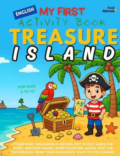 My First Activity Book in English: Treasure Island – Coloring Pages, Mazes, Dot-to-Dots, Matching & Word Games, Spot the Differences | Screen-Free Learning Fun for Kids Ages 5–10 | ESL Friendly