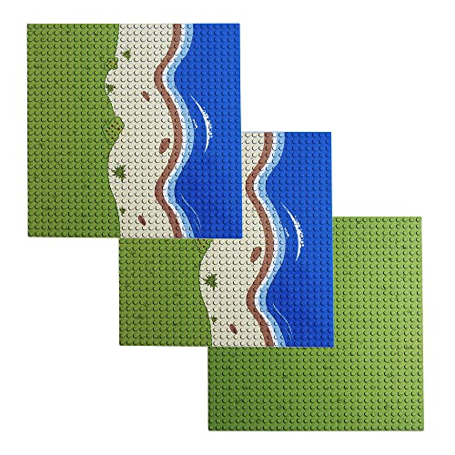 Apostrophe Games Island byggstenar basplattor kompatibla med alla större varumärken – 3-pack ö-tallrikar – 2 raka och 1 mittgräs tillägg för att expandera din ö – 25 x 25 cm, flerfärgad