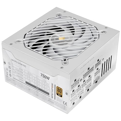 Mars Gaming MPB750PSI, Full Modular PC Strömförsörjning 750W, 10 års garanti, 80Plus Gold 90%, Fläkt SI Extreme Silence, AI2-RPM, DC-DC och SMD teknologier, ATX 3.1 och PCIe 5.1 Vit