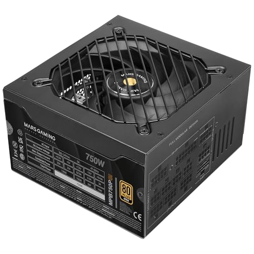 Mars Gaming MPB750PSI, Full Modular PC Strömförsörjning 750W, 10 års garanti, 80Plus Gold 90%, Fläkt SI Extreme Silence, AI2-RPM, DC-DC och SMD teknologier, ATX 3.1 och PCIe 5.1 Svart
