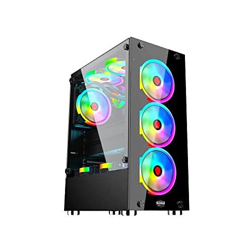 PC och bärbara datorer Machpower märke fodral gaming 4 fläkt Argb, 3 USB 3.0, glasfrontpanel