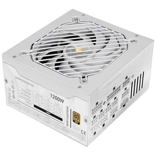 Mars Gaming MPB1200PSI, Full Modular PC Strömförsörjning 1200W, 10 års garanti, 80Plus Gold 90%, Fläkt SI Extreme Silence, AI2-RPM, DC-DC och SMD teknologier, ATX 3.1 och PCIe 5.1 Vit