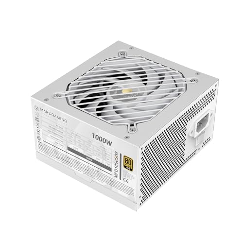 Mars Gaming MPB1000SI, PC ATX Nätaggregat 1000W, 7 Års Garanti, 80Plus Gold 90%, SI Extreme Silence Fläkt med Koppar- och Aluminiumkärna, AI2-RPM, DC-DC och SMD Tekniker, Vit