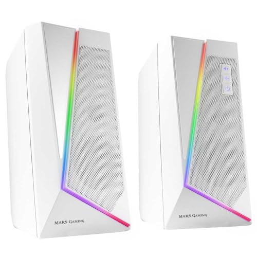 Mars Gaming MS-PRO, Kompakta Högtalare 10W, Dynamisk RGB Flow-Belysning, Datorhögtalare med Kontrollbox och 3,5mm Jack-Ingång, Gaminghögtalare Kompatibla med PC/Mac/Smartphone/Surfplatta, Vit