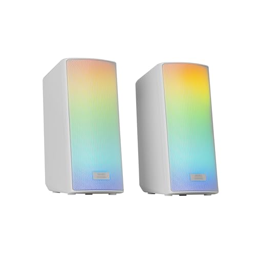 Mars Gaming MS-H, RGB Flow gaminghögtalare, inverterad drivers och 10 W 3D-surroundljud, kompakta högtalare med volymkontroll, universell 3,5 mm jackkontakt, vit