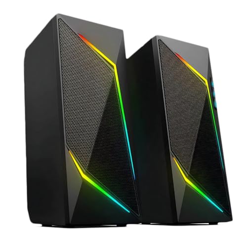 Datorhögtalare, Smalody Stereo PC-högtalare med coolt färgglatt LED-ljus, Kompatibel med Gaming Desktop, PC Cellphone Tablets Desktop Laptop
