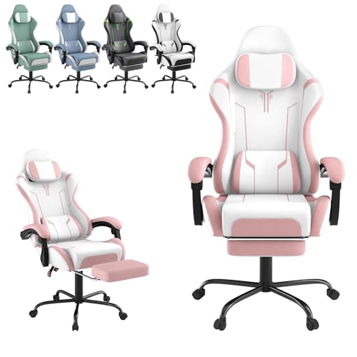 ACXIN Gaming stol massage med fotstöd och nackstöd, ergonomisk spelstol med massage ländryggskudde, justerbart ryggstöd 90–135°, vadderade armstöd för spelare – rosa