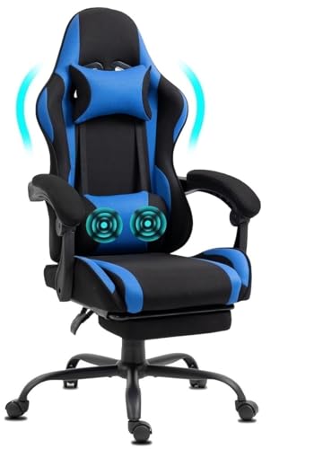 Dowinx Kontorsstol gaming stol tyg, ergonomisk gamingstol, massage gamingfåtölj med fotstöd, nackstöd, massage ländryggskudde, spelstol, snurrstol (himmelsblå)