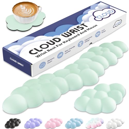 Sushret Cloud Handledsstöd Set, Sött Molnformat Arm- & Handstöd I PU-Läder Med Memory Foam För Tangentbord Och Mus, Perfekt För Kontor, Dator- Eller Gaming-Setup, Ljusgrön
