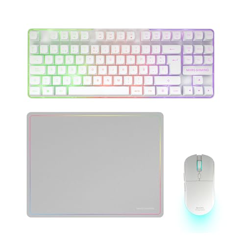 Mars Gaming MCPWTKL, Trådlös Gaming-Combo, DualPro Link 2.4GPRO-teknologi, TKL FRGB Rainbow-tangentbord + RGB 3200DPI-mus med HUANO-brytare + Halkfri musmatta 360x260mm, Vit, Spanska