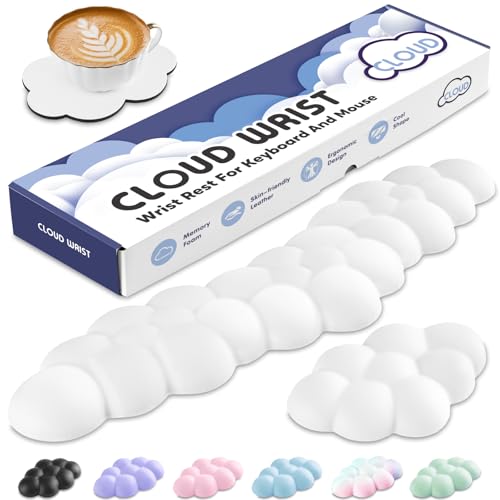 Sushret Cloud Handledsstöd Set, Sött Molnformat Arm- & Handstöd I PU-Läder Med Memory Foam För Tangentbord Och Mus, Perfekt För Kontor, Dator- Eller Gaming-Setup, Vit