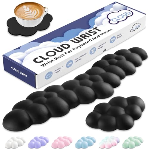 Sushret Cloud Handledsstöd Set, Sött Molnformat Arm- & Handstöd I PU-Läder Med Memory Foam För Tangentbord Och Mus, Perfekt För Kontor, Dator- Eller Gaming-Setup, Svart