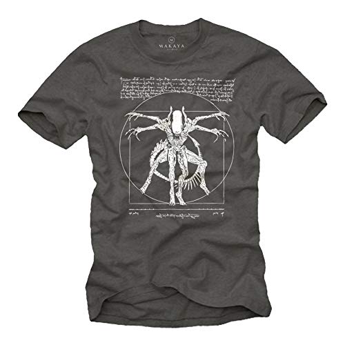 MAKAYA Coola Saker För Män - Gaming T-Shirt Med Tryck - Presenter För Herrar Alien Da Vinci Tröja Grå Storlek XXXXL