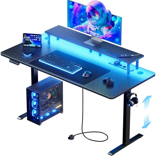 HLFURNIEU LED Elektriskt Skrivbord 120 x 60 cm, Gamingbord med 3 Minnesinställningar, Höjdjusterbart Skrivbord med Kolfiberyta, Lätt att Montera, Standing Desk Svart
