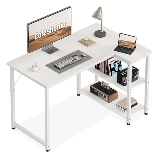 Coleshome Gamingbord, Hörnskrivbord med Reversibel Förvaringshylla, Utrymmessparande Skrivbord, Passar för PC-skrivbord i Hörn i Hemmet (Vit, 120x70cm)