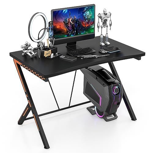 HENGMEI Gaming bord, gaming skrivbord, datorbord med mugghållare, hörlurskrokar Z-ram, PC skrivbord, spelskrivbord för hemmakontor, hörnskrivbord, 120 x 60 cm, typ A