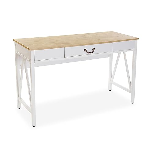 Versa Christoph Bord för dator, Bord för rum eller studio. Gamingbord med låda, Mått (Al x L x An) 76 x 45 x 120 cm, Trä och metall, Vit