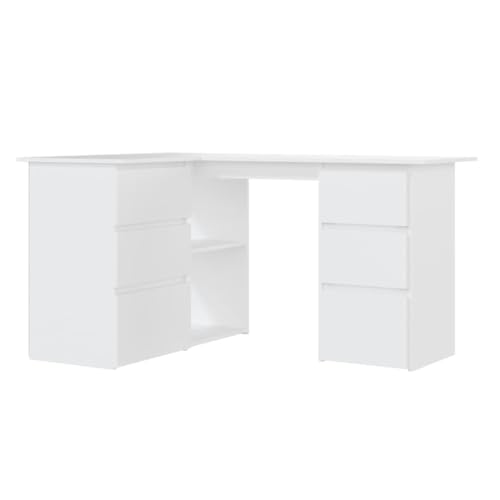 vidaXL Hörnskrivbord Datorskrivbord Kontorsbord Datorbord Dataskrivbord Skrivbord Hörndatorbord Bord Gamingbord Databord Vit Spånskiva