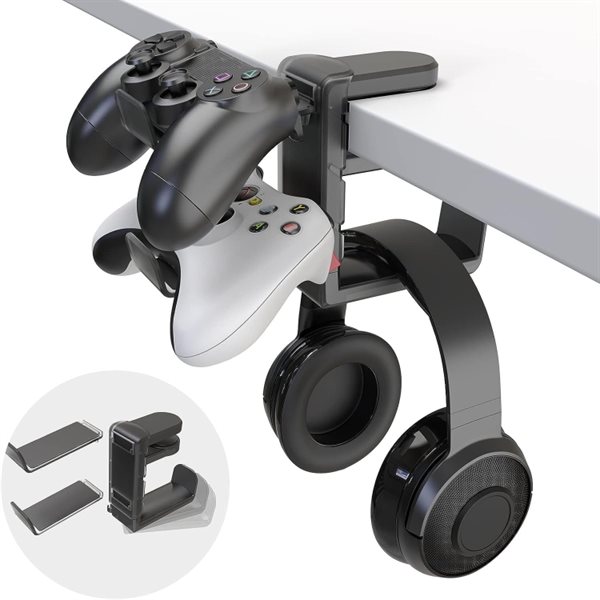 Skrivbordsställ för gamingheadset och 2 handkontroller med roterbar design
