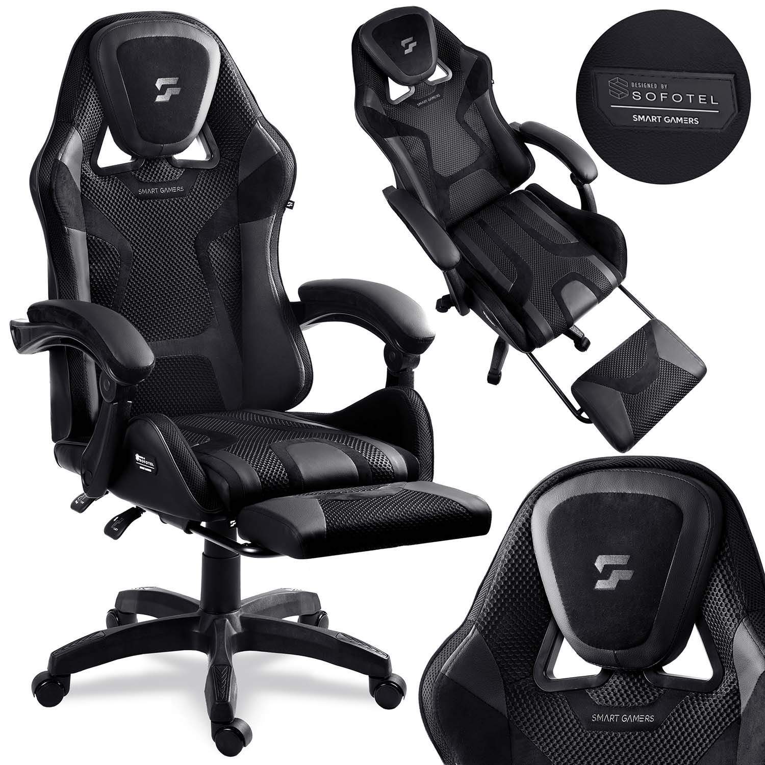 PZDO Gamingstol ergonomisk PC-stol med högteknologiskt tyg, gamingstol datorstol med fotstöd, kontorsstol, vadderad spelstol, spelfåtölj för vuxna, tonåringar (svart)