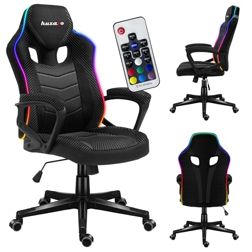 huzaro Force 2.5 RGB kolnät | LED-belysning, gamingstol, kontorsstol, datorstol PC | Spelare | höjdjusterbar snurrbar med gungfunktion tyg | kan belastas upp till 130 kg | svart