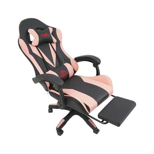 Wiyuer Gamingstol, ergonomisk PC-stol, justerbar kontorsstol, ergonomisk vadderad 360° vridbar spelstol med ländryggskudde, fotstöd för datorspel arbete (rosa)