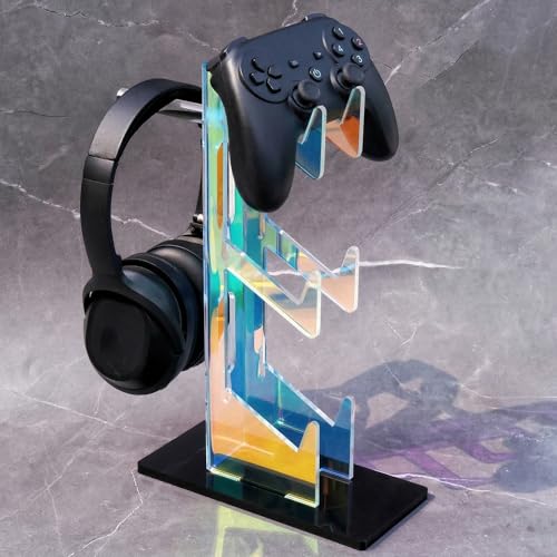NiHome Flerlager Iriserande Akryl Ställ för Spelkontroller och Hörlurar, Universellt Stativ för Gaming-Tillbehör, Stabilt Halkfritt Ställ för Konsolkontroller och Headset (3-Våningar)